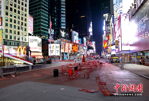 為確保安全,警方從晚上8點開始,疏散并封鎖了時代廣場,同時清空了幾棟住宅和商業大樓。不過,已進入時代廣場的餐廳和劇場里的人被允許留下或離開。