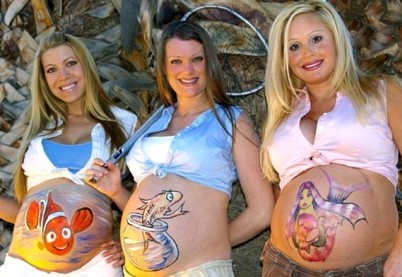 現(xiàn)在越來(lái)越多的孕婦作畫(huà)裝點(diǎn)大肚子,肚子上的風(fēng)景也是不設(shè)限,包括著名的卡通人物,小碎花,甚至包括未出生的嬰兒等。