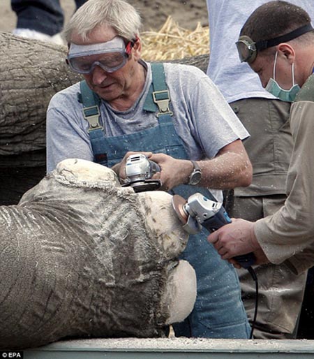 這只名為“男孩”的亞洲象今年已經(jīng)39歲了,他的腳趾甲太長(zhǎng)了以至于他一直感覺(jué)很不爽,動(dòng)物園的工作人員看在眼里疼在心上,專門花重金從德國(guó)請(qǐng)來(lái)一名獸醫(yī)和他的多位助手,為“男孩”修理指甲。