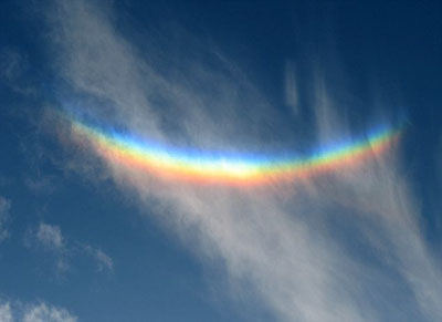 專家解釋,一般彩虹的出現,是光線穿透雨點后折射到另一處時所產生的現象。但這朵天空中的“微笑”是日光穿透卷云或層云中的數百萬顆細微冰晶粒子時形成。