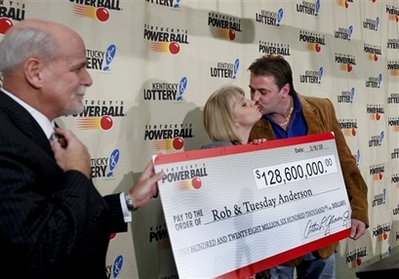 肯塔基州彩票中心的工作人員在5日宣布,羅布-安德森和他的妻子是該州歷史上獲中彩票金額最高的“彩民”。