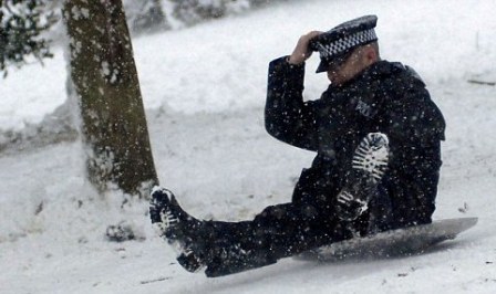 中新網1月7日電 綜合英國媒體報道,英國的連日暴雪天氣為英國警方和普通民眾都帶來了不少麻煩,許多民眾因被他人用雪球擊中而向警方投訴。但警方卻表示大雪也能帶來好處:他們沿著一名逃犯在雪地中新留下的足跡成功將其抓捕。而且,倫敦警察們還坐著自己“心愛”的武器——防暴盾牌從山坡上往下滑,以此玩樂。