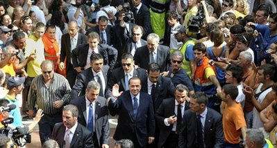 事實(shí)上,早在6月2日出席在羅馬舉行的意大利共和國成立日紀(jì)念活動(dòng)時(shí),貝盧斯科尼就遭到了一陣起哄的口哨聲。自那以后,只要是出現(xiàn)在公開場所,貝盧斯科尼總會(huì)聽到民眾的起哄。