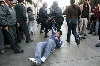 中新網(wǎng)6月12日電 據(jù)美聯(lián)社等媒體報道,秘魯約2萬民眾當?shù)貢r間11日在國會大廈前游行,警方施放催淚瓦斯將民眾驅(qū)散。