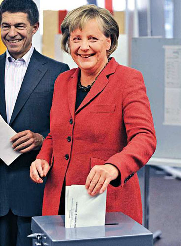 默克爾領(lǐng)軍的基民黨/基社黨(CDU/CSU),隸屬中間偏右的保守陣營,與主張自由競爭市場經(jīng)濟(jì)體制和減稅的右派自民黨政見相近,兩黨組成聯(lián)合政府,德國的政治生態(tài)從此向右轉(zhuǎn),對投資環(huán)境和工商團(tuán)體有利,外交部長一職,很可能由自民黨的黨魁威斯特威勒(Guido Westerwelle)出任。