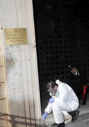 據(jù)報(bào)道,意當(dāng)?shù)鼐奖硎荆猱?dāng)?shù)貢r間2010年1月3日凌晨5點(diǎn)左右(格林尼治標(biāo)準(zhǔn)時間凌晨4點(diǎn)),意大利南部雷焦卡拉布里亞市(Reggio Calabria)中心地帶的法院大樓遭到炸彈襲擊。有人在法院大門處設(shè)下自制炸彈,使得爆炸損毀了法院大門,但幸未造成人員傷亡。