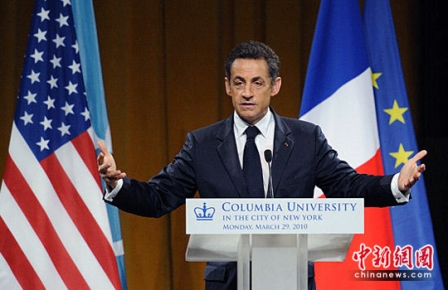 據報道,3月29日,薩科齊在美國紐約的哥倫比亞大學發表演講?赡苁潜桓鐐惐葋喆髮W學生的熱情所感染,薩科齊放棄了事先準備好的演講稿,改說肺腑之言。他談到美國最近通過的醫療保險改革方案,說歡迎美國加入福利國家的行列。
