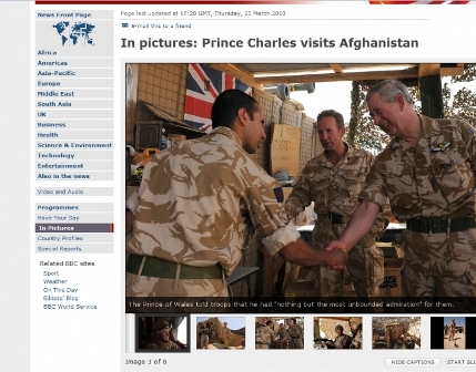 據(jù)報道,查爾斯25日直入塔利班活動較為頻繁的阿富汗南部赫爾曼德省,慰問駐扎在當(dāng)?shù)氐挠④娛勘_@是阿富汗戰(zhàn)爭以來查爾斯首次慰問駐阿前線官兵。