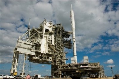 “戰(zhàn)神1-X”火箭是為了代替航天飛機而開發(fā)的新一代載人火箭“戰(zhàn)神1(Ares 1)”的實驗火箭,將成美國重返月球航天器之一。原定于美國東部時間27日8時(北京時間20時)發(fā)射,但因天氣條件不佳,不得不推遲到今天發(fā)射。