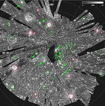 Mini-Sar發現的北極附近的40多個隕坑里的水冰寬度不等,直徑從2公里到15公里之間。盡管不能測出隕坑的深度,但科學家說,這些水冰至少應該在2米厚以上,才會讓月船一號測出。