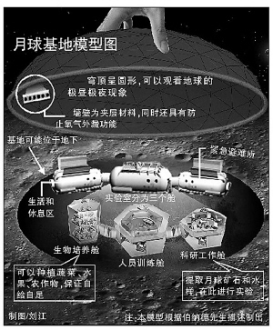伯納德說,建設月球基地是一件極具挑戰性的事情。現在人類已經實現了太空飛行、登陸月球,我們已經掌握了在星球與星球之間短暫飛行的基本技術。現在到2020年,我們將會為月球基地的建立做好技術等各方面的準備工作,也許在不遠的2050年,我們會有幸目睹人類第一個月球基地的誕生。