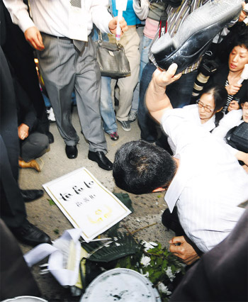 盧武鉉的支持者還在首爾德壽宮大門外設立祭奠所。為防止悼念活動中出現(xiàn)意外,政府在那里部署了防暴警察。