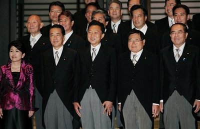 中新網(wǎng)9月17日電 據(jù)香港《文匯報(bào)》報(bào)道,日本新任首相鳩山由紀(jì)夫16日公布其內(nèi)閣成員名單,分別為:金融兼郵政改革大臣─龜井靜香(72歲,國(guó)民新黨黨魁)、副首相兼國(guó)家戰(zhàn)略大臣─菅直人(62歲)、首相─鳩山由紀(jì)夫(62歲) 、少子化兼消費(fèi)者行政大臣─福島瑞穗(53歲,社民黨黨魁)、外務(wù)大臣─岡田克也(56歲)、國(guó)家公安委員長(zhǎng)─中井洽(67歲)、國(guó)土交通大臣─前原誠(chéng)司(47歲)、財(cái)務(wù)大臣─藤井裕久(77歲)、內(nèi)閣官房長(zhǎng)官─平野博文(60歲)、防衛(wèi)大臣─北澤俊美(71歲)、文部科學(xué)大臣─川端達(dá)夫(64歲)、法務(wù)大臣─千葉景子(61歲)、農(nóng)林水產(chǎn)大臣─赤松廣隆(61歲)、經(jīng)濟(jì)產(chǎn)業(yè)大臣─直山鳥(niǎo) 正行(63歲)、總務(wù)大臣─原口一博(50歲)、行政刷新會(huì)議大臣─仙谷由人(63歲)、環(huán)境大臣─小澤銳仁(55歲)、厚生勞動(dòng)大臣─長(zhǎng)妻昭(49歲) 。