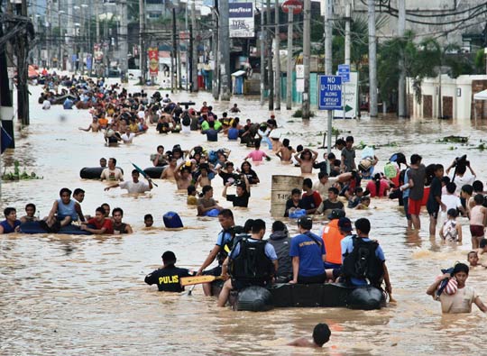 熱帶風暴“凱薩娜”26日在菲律賓登陸,大馬尼拉地區12小時內降雨達424毫米,超過有紀錄以來的9月份平均全月降雨量(392毫米),創1967年6月以來單日降雨量之最。