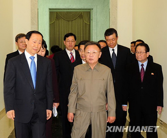 朝鮮勞動(dòng)黨總書記、國(guó)防委員會(huì)委員長(zhǎng)金正日8日在咸鏡南道咸興市會(huì)見了正在朝鮮進(jìn)行友好訪問的中共中央對(duì)外聯(lián)絡(luò)部部長(zhǎng)王家瑞一行。