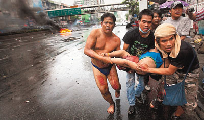 中新網5月17日電 據香港《文匯報》17日報道,泰國流血沖突持續,政府昨日一度威脅從晚上11時至今晨5時,在曼谷部分地區實施宵禁,方便軍警識別平民和恐怖分子,但軍方表示為免影響居民,無需宵禁。泰國政府已委派紅十字會等非政府組織,協助疏散示威區的老弱婦孺,游說他們在今日下午3時(北京時間今日下午4時)前離開,意味政府隨時清場。