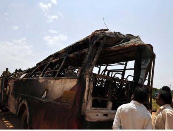 中新網5月31日電 據法新社報道,5月30日凌晨,在印度南部的卡納塔克邦,一輛公共汽車起火爆炸,造成30人活活被燒死,另有30人受傷。