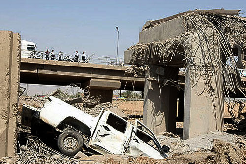 當(dāng)天上午,在伊拉克財(cái)政部旁邊的立交橋下發(fā)生一起爆炸案,一輛裝載有炸彈的汽車發(fā)生爆炸,造成立交橋部分橋體被炸毀,至少28人死亡,逾200人受傷,10層樓高的財(cái)政部也遭受了嚴(yán)重?fù)p毀。