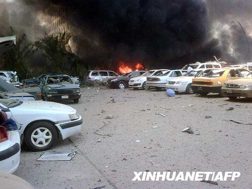 8月19日,在伊拉克首都巴格達伊外交部附近的停車場,被引爆的卡車冒出滾滾濃煙。伊拉克內政部19日發布的最新消息說,巴格達市中心當天發生的兩起爆炸襲擊事件已造成95人死亡、563人受傷。新華社/法新