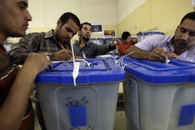 伊拉克選舉委員會工作人員統計選票