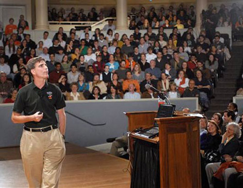 保施被評為2008年最具鼓舞人心的人。2007年8月,他得知自己患上胰腺癌,生命只剩下幾個月。去世之前,通過他的著名演講《最后一課》的視頻和書,鼓舞了成千上萬的人們。這篇演說反響極大,全球數百萬人觀看了網上視頻,美國廣播公司將他選為“2007年年度人物”之一,《時代》雜志將他列入了“世界上影響最大的100人”,同名書籍至今仍然排在“建議類暢銷書”的榜首。這張照片是保施2007年11月27日,在弗吉尼亞大學禮堂中做最后一次演講時的情景。