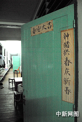 留學生宿舍門上已經褪色的春聯