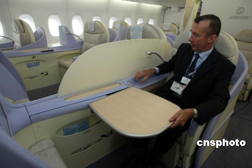 10月26日,參觀空中客車A380飛機(jī)的北京民眾被其豪華舒適的客艙所吸引。當(dāng)日,一架生產(chǎn)編號(hào)為007的空中客車A380客機(jī)停靠在北京首都國際機(jī)場N104機(jī)位,接待北京媒體及部分嘉賓的參觀。此次A380中國大陸之行為期一周,包括廣州、上海及北京三個(gè)城市,這是A380飛機(jī)2007年環(huán)球飛行之旅的重要部分。中新社發(fā) 楊影懿 攝