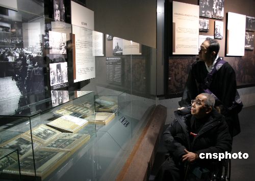 十二月十三日,經(jīng)過兩年擴(kuò)建的侵華日軍南京大屠殺遇難同胞紀(jì)念館正式開放。擴(kuò)建后的紀(jì)念館占地一百一十一畝,是原來的三倍多,總建筑面積擴(kuò)大十倍,達(dá)到二萬五千平方米,其中新展區(qū)九千平方米。目前共展出三千件文物、三千五百多張照片,并設(shè)置了檔案墻,擺放著一萬多份遇難者、幸存者以及見證歷史的外籍人士的個(gè)性化資料盒等。中新社發(fā) 苗杰 攝