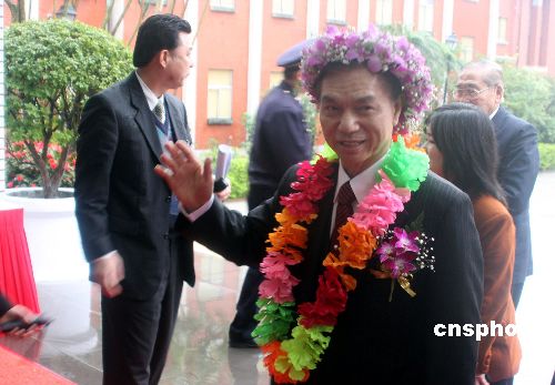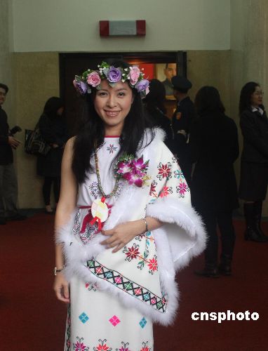 為吸引記者,一些“立委”的著裝花樣翻新。圖為一位“立委”頭戴花環前來報到。