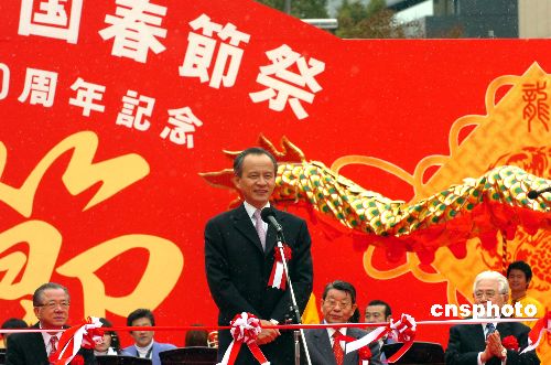 2月9日,第二屆名古屋中國春節(jié)祭在日本名古屋市的久屋大通公園隆重開幕,中國駐名古屋總領(lǐng)事李天然在開幕式上表示,“名古屋中國春節(jié)祭”是中國傳統(tǒng)的“春節(jié)文化”和日本民族喜聞樂見的“祭”的形式相結(jié)合的產(chǎn)物,相信這種融中華民族的飲食文化、演藝文化和民俗文化于一爐的活動(dòng)形式一定能夠讓日本民眾和在日華人華僑共度一個(gè)真正的“中國年”。中新社發(fā) 滕劍峰 攝