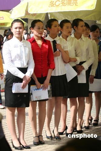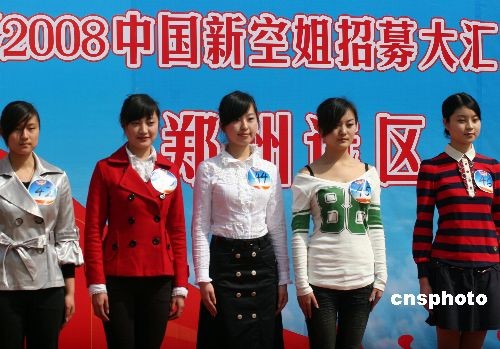 3月22日,2008中國新空姐招募大會在鄭州二七廣場舉行揭幕儀式。當(dāng)日,來自全國各地的兩千多位美女云集鄭州報名應(yīng)聘。據(jù)介紹,這是有史以來最大規(guī)模的空姐招募,此次招募大會計劃在全國招募500名空姐,其中鄭州地區(qū)招募55名空姐。中新社發(fā) 陳代述 攝