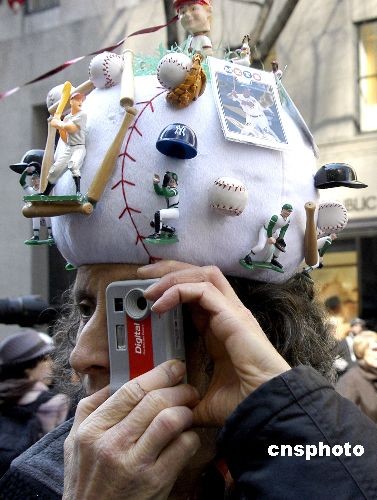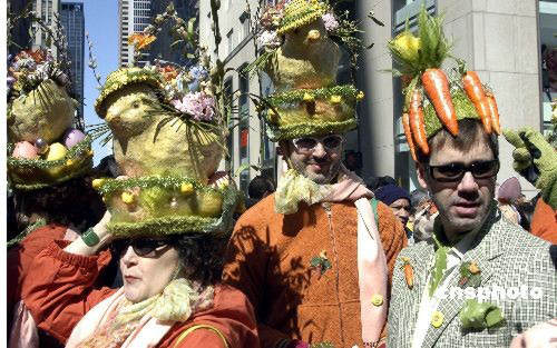 3月23日,紐約曼哈頓舉行慶祝復活節游行,人們頭戴造型各異的帽子參加慶祝活動。中新社發 鄧悅 攝