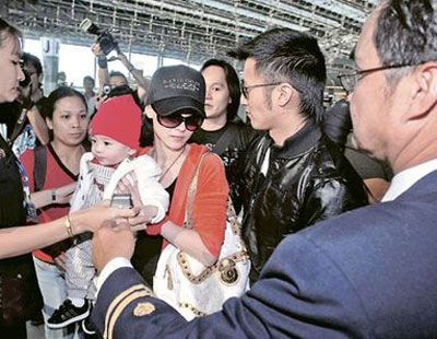 謝霆鋒護妻兒返港 與柏芝十指緊扣柔情依舊(組圖)