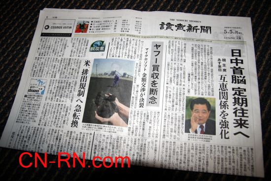 胡錦濤主席訪日 日本四大報頭條報道(組圖)