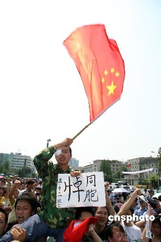 5月19日14時28分,成都天府廣場,數以萬計的民眾自發聚集在一起默哀,為在四川汶川地震中遇難的同胞哀悼、祈禱,之后,萬人高喊“雄起”!