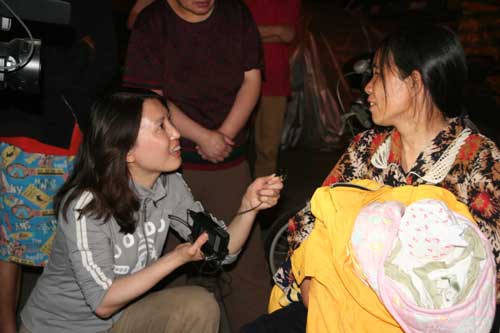 陳曉楠在綿陽的臨時醫院里采訪。