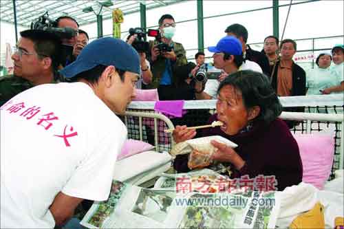 當天,一眾藝人們到“東方汽輪”時,先默哀了一分鐘,再開始探訪工作。之后一眾藝人探訪當地醫院時,更一度引起騷亂,不論是病人還是醫護人員,看到劉德華等明星來訪都十分興奮,甚至有病人馬上跑下床要求簽名合照。而明星們都來者不拒,并且對年老病患者十分關懷,華仔及鄭秀文等更坐到一些婆婆床邊跟她們聊天。
