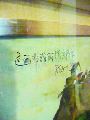 前天,吳冠中在《池塘》上親筆題字:“這畫非我所作,系偽作”,并簽名。供圖/蘇敏羅