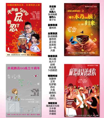 中新網9月28日電 雷子樂笑工廠在打造了六部非常成功的“減壓話劇”之后,近日又向社會宣布:從2008年9月28日到2009年1月18日,在自己的京城西部主場地“八一劇場”,以“雷子樂笑工廠08火爆演出季”的形式,高舉“給您的08年做一個喜劇結尾”之娛樂大旗,讓工作了一年的北京觀眾充分放松心情,開懷大笑,釋放情懷,真正做到為都市人“減壓”。