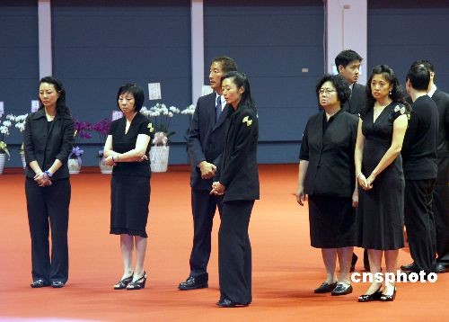 臺塑企業(yè)創(chuàng)辦人王永慶的遺體十七日由長榮班機(jī)運(yùn)抵臺灣,靈堂設(shè)在桃園縣的長庚大學(xué)活動(dòng)中心。圖為王永慶的親屬守候在靈堂內(nèi)。中新社發(fā) 耿軍 攝