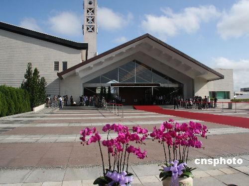 臺塑企業創辦人王永慶的遺體十七日由長榮班機運抵臺灣,靈堂設在桃園縣的長庚大學活動中心。圖為靈堂外景。中新社發 耿軍 攝
