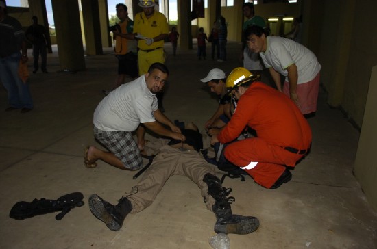 當時體育場內正在進行足球賽,體育館頂部水泥石塊突然坍塌,兩名防暴警察不幸身亡。比賽不得不暫停40分鐘。
