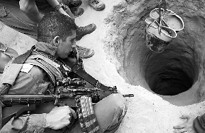 以色列發動對加沙的空襲以來,加沙的“地道”成了重點打擊對象。一位加沙居民稱,在與埃及接壤的“地道區”,一個上午就被以軍轟炸了19次,造成附近40多名平民傷亡。據埃及官員保守估計,空襲以來,至少有120條地道報廢。媒體驚呼“加沙失去了最后一條生命線”。地道———怎么會成為加沙人的生命線?而以色列又為何對它重點打擊?這要從兩年前說起。
