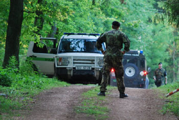 高地周圍樹林里軍警遍布崗哨。(黃頻攝影)