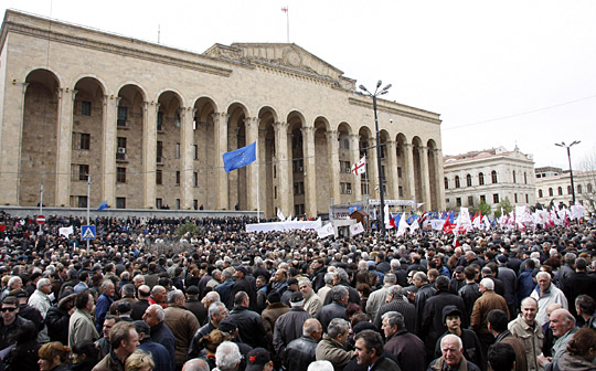 反對黨領(lǐng)袖呼吁政府不要使用暴力手段鎮(zhèn)壓抗議示威活動。2007年11月發(fā)生在首都第比利斯的抗議示威遭到警方使用橡皮子彈和催淚瓦斯的鎮(zhèn)壓。