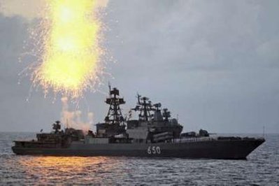 12月1日,委俄兩國共派出5艘艦只,其中包括俄“彼得大帝”號核動力導彈巡洋艦、“恰巴年科海軍上將”號大型反潛艦。在1日的軍演中,以“彼得大帝”為旗艦,展開了28公里到370公里范圍內的“共同防務”協調演習。當天的演習進行了9個小時。俄方參演人數為1600人,委海軍參演人數為700人。