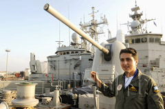 本次公開的是歐盟多國艦隊的旗艦、希臘的“普薩拉”號護衛艦。希臘海軍的有關人士向記者介紹了艦橋及艦載直升機。