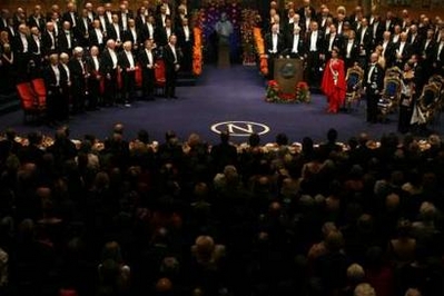 中新網12月12日電 綜合報道,2007年諾貝爾獎頒獎典禮近日分別在挪威首都奧斯陸和瑞典首都斯德哥爾摩隆重舉行。不同領域的多位獲獎者呼吁突破學科和國家界限,應對全球變暖等人類共同面對的挑戰。瑞典國王,王后等王室成員還與諾貝爾獎獲得者共享大餐。