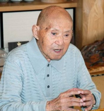 記得去年他被問到長壽的秘訣時說:"總之,不要喝酒就是了"。他還口齒清晰地說:"我還不想死呢!"