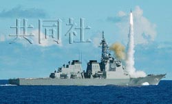日本海上自衛(wèi)隊(duì)的宙斯盾艦“霧島”號(hào)在環(huán)太平洋聯(lián)合軍演中發(fā)射防空導(dǎo)彈。